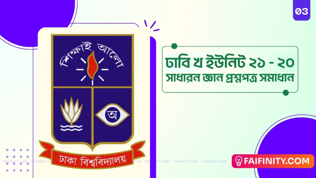 ঢাকা বিশ্ববিদ্যালয় ২০২০-২০২১ শিক্ষাবর্ষের GK প্রশ্ন উত্তর – খ ইউনিট সাধারন জ্ঞান প্রশ্নপত্র সমাধান