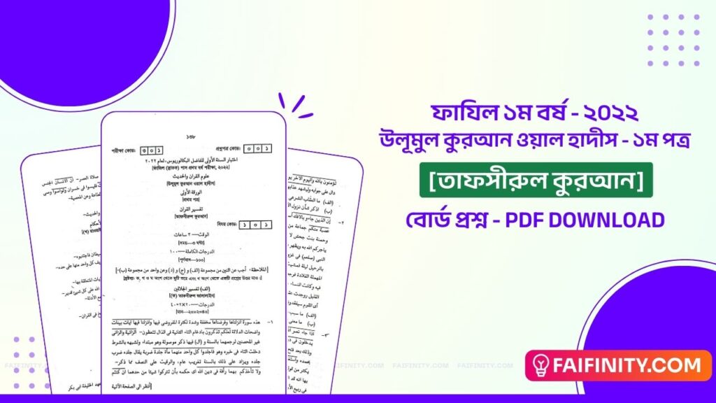 ফাযিল ১ম বর্ষ ২০২২ – উলূমুল কুরআন ওয়াল হাদিস ১ম পত্র – তাফসীরুল কুরআন বোর্ড প্রশ্ন PDF | Fazil